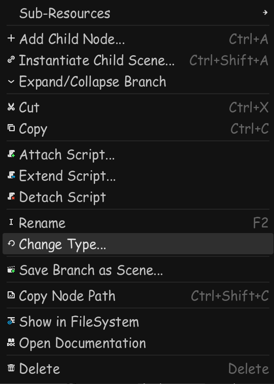 We're going to use Godot's physics system to move around, so we need to change what kind of node the Player is.